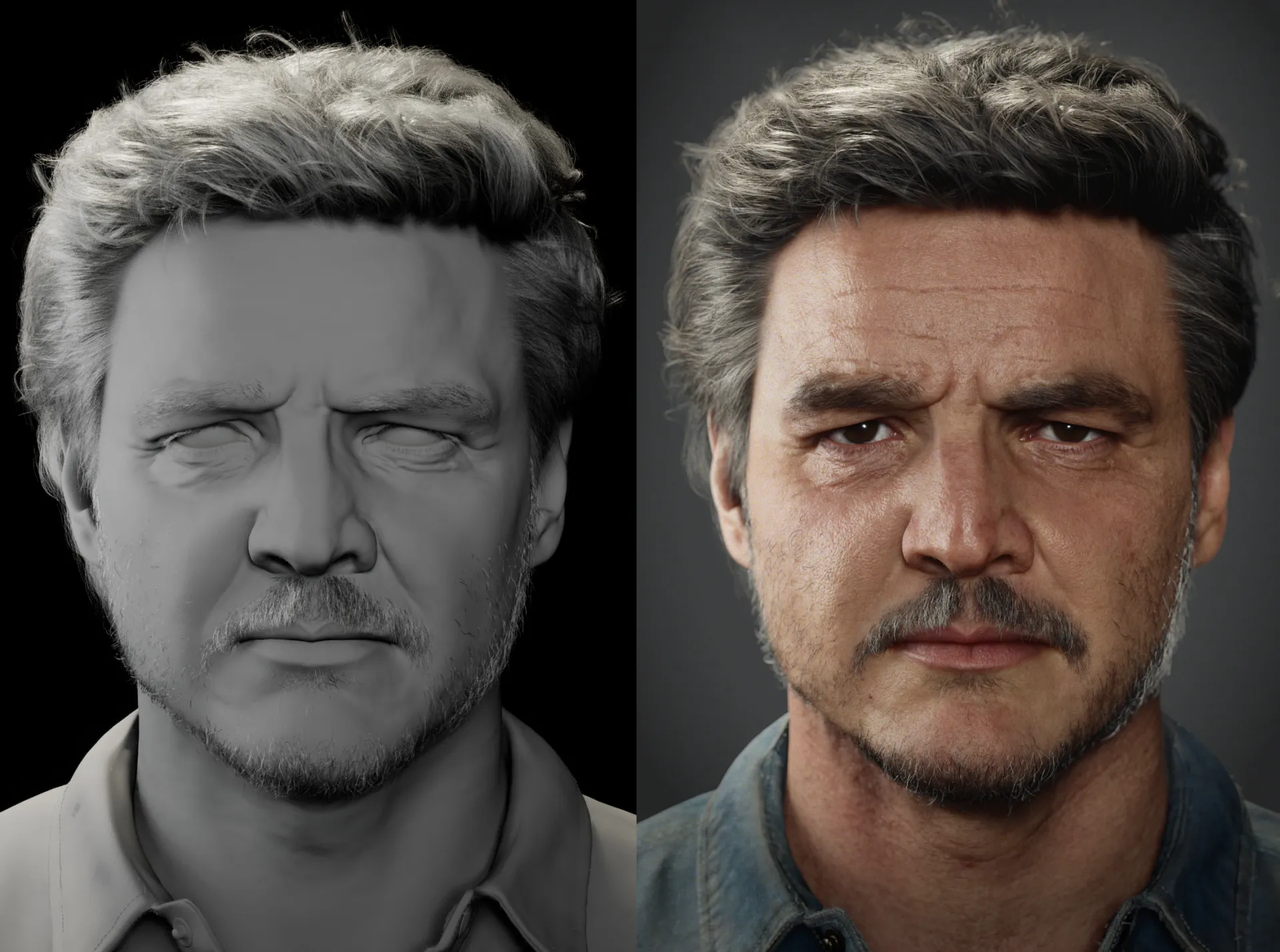 I'm really excited to present this collaboration project with Vimal Kerketta! I reached out to him about transforming his incredible sculpt of Joel (Pedro Pascal) into a full cg double and here is the final result!