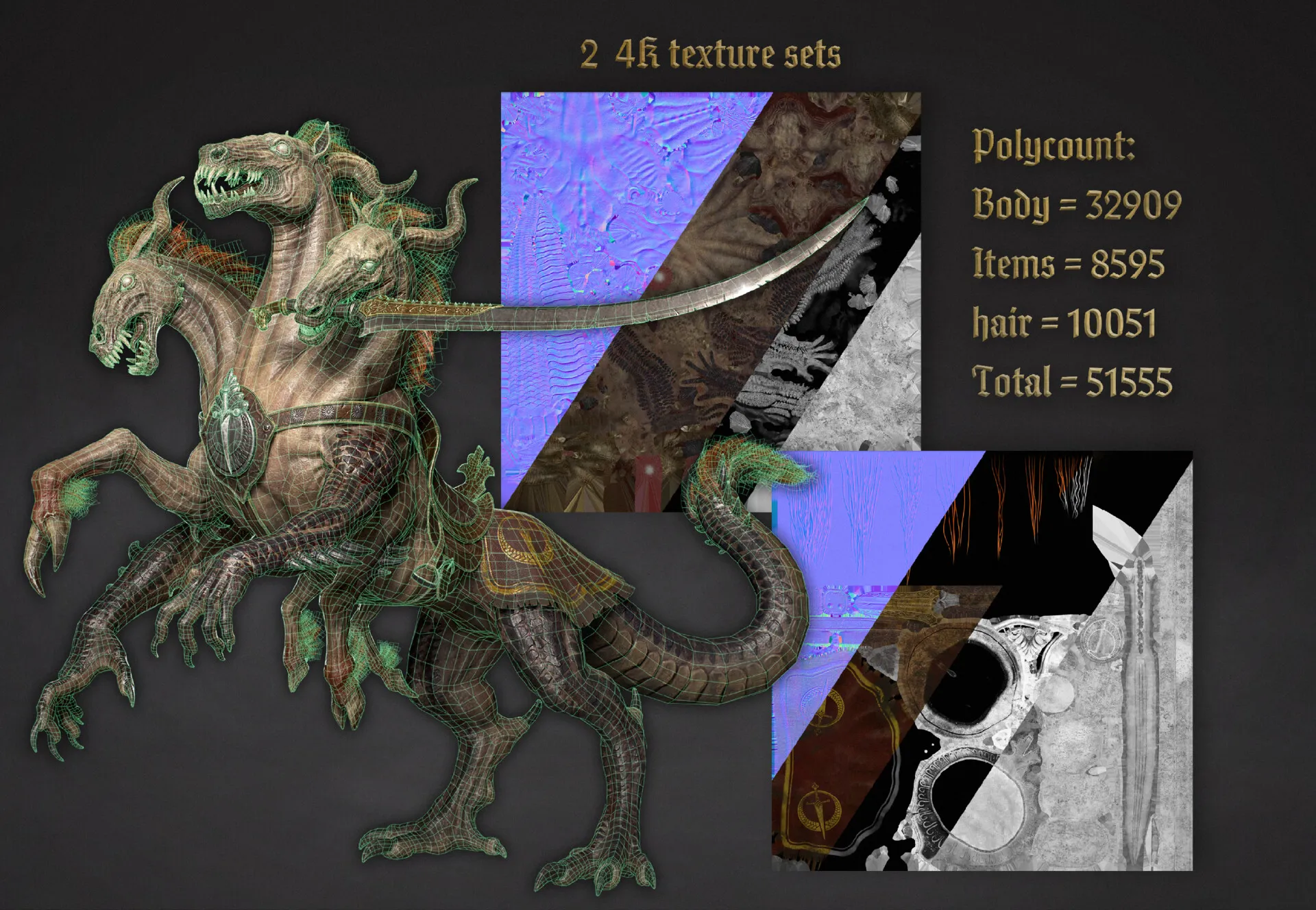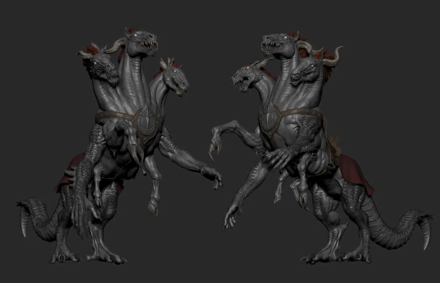 So this is my TRULY outdated submission for the Artstation challenge Dragon's Rise: The Forgotten Realms. I just decided to complete some of the projects that I had started. One of them is this wonderful horse for the last challenge. Everything was against me finishing it on time. Illness, then a change of location, but I'm glad that I was able to complete it after in my spare time. It was also my first experience with hair cards. I also got into the idea of making unique heads, which didn't add to the simplicity.
