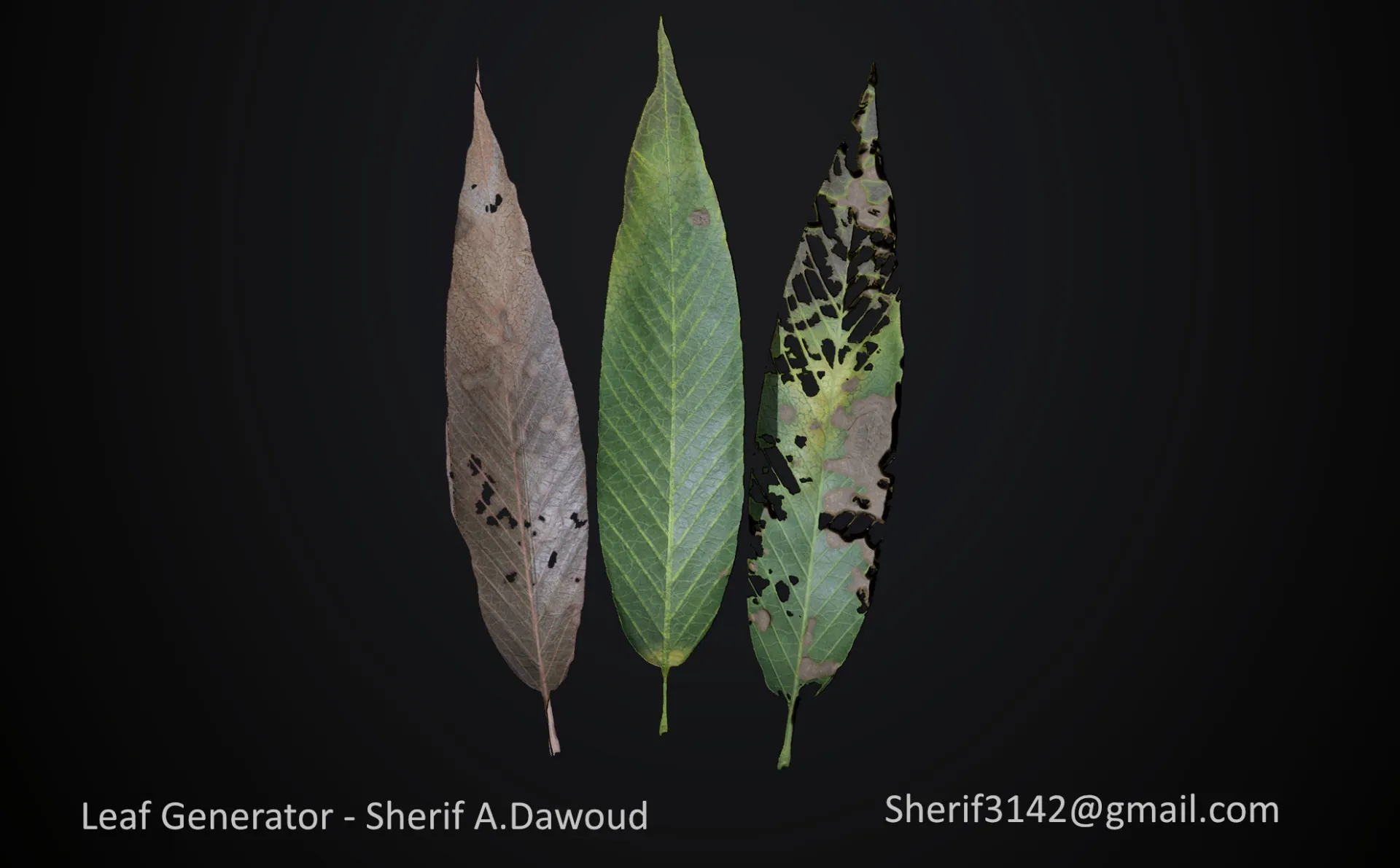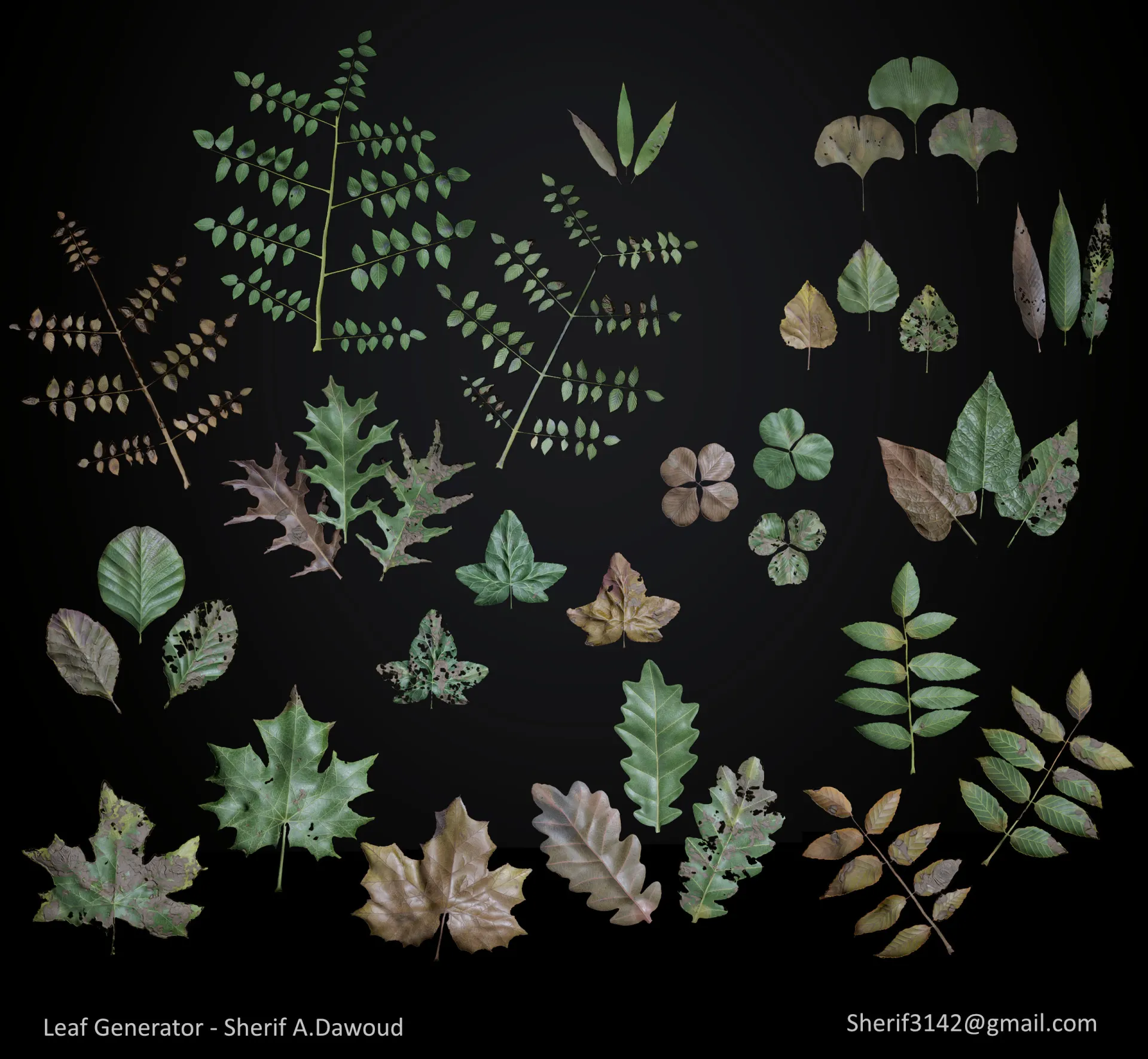 The exposed parameters also allow you to adjust the venation,margin types and shapes and the age,damage amount easily,I hope you like it.