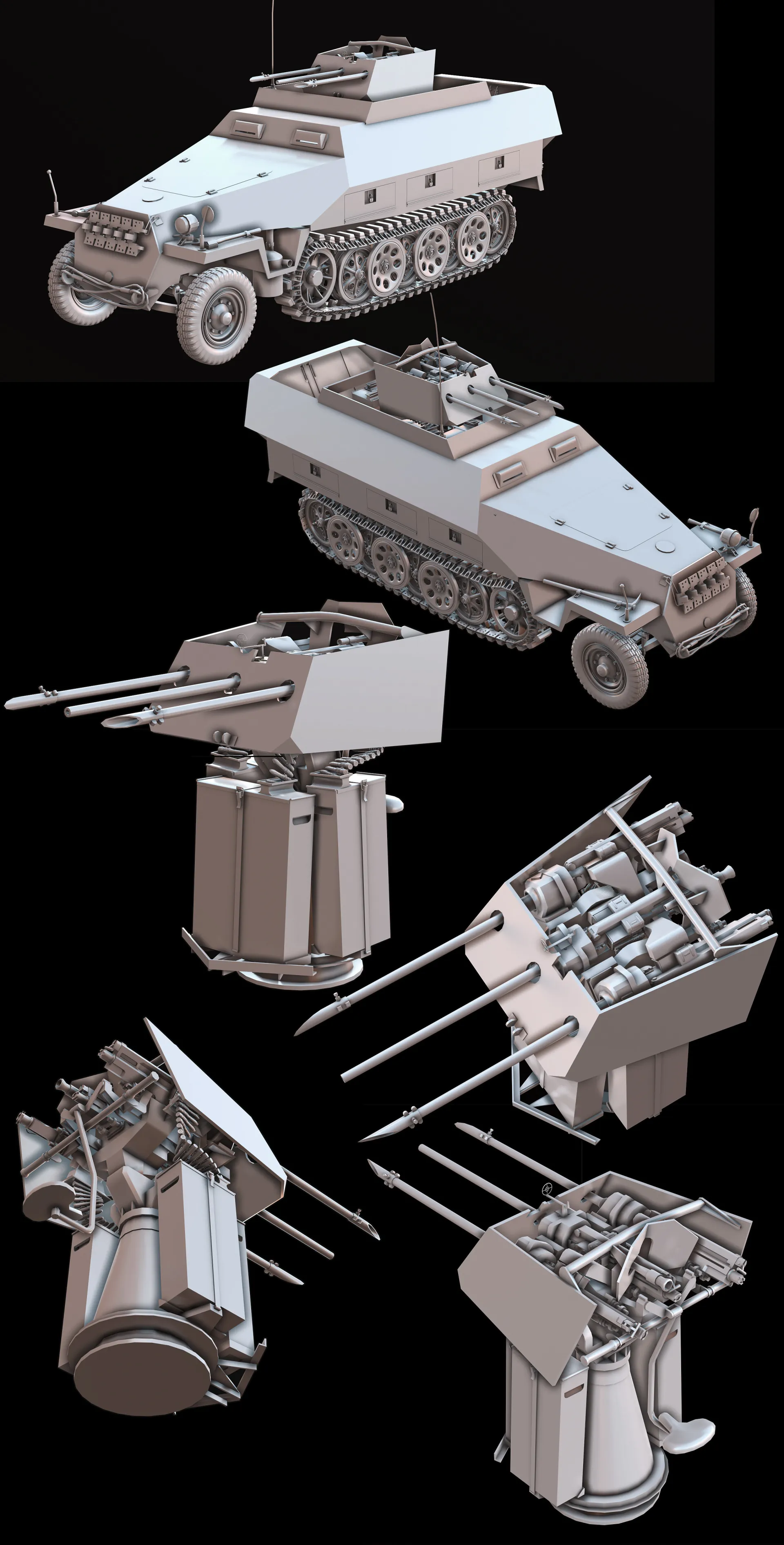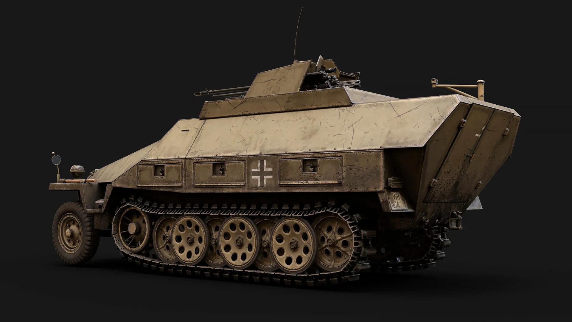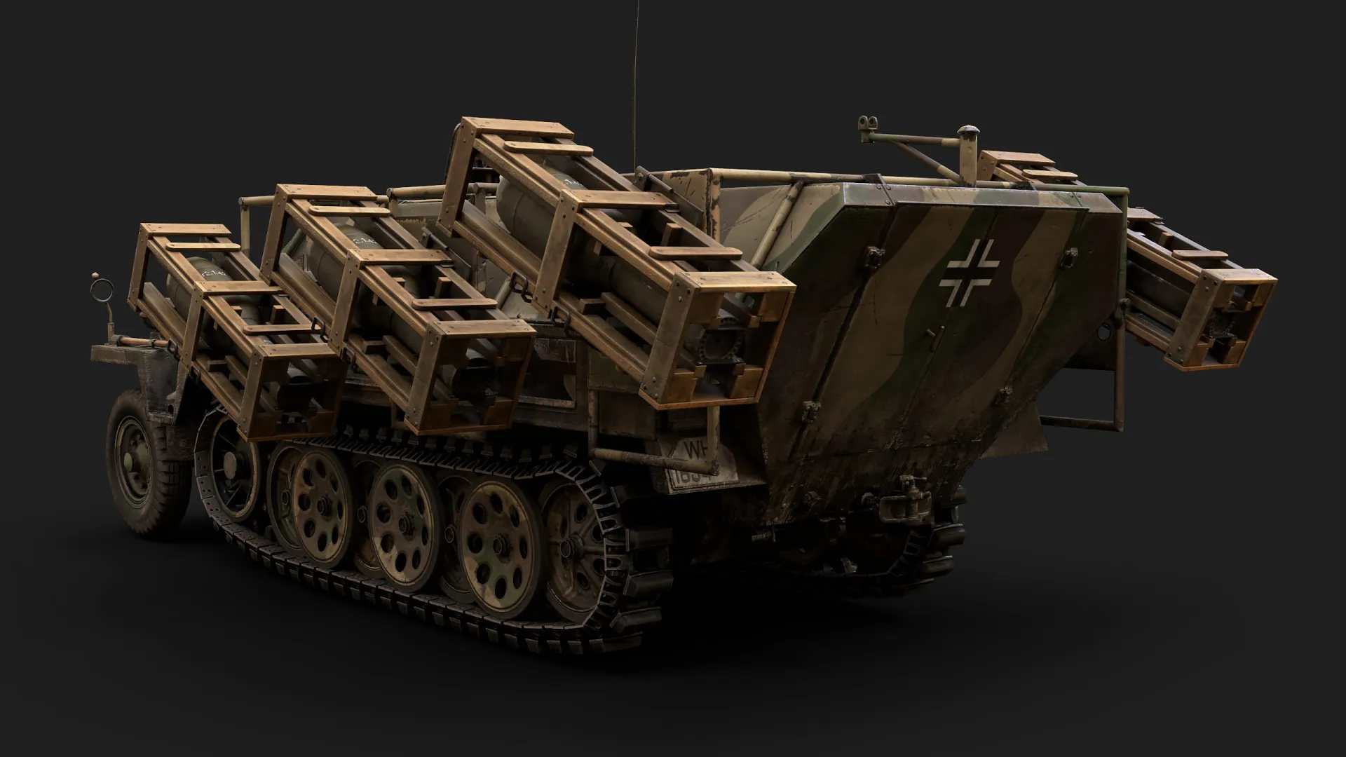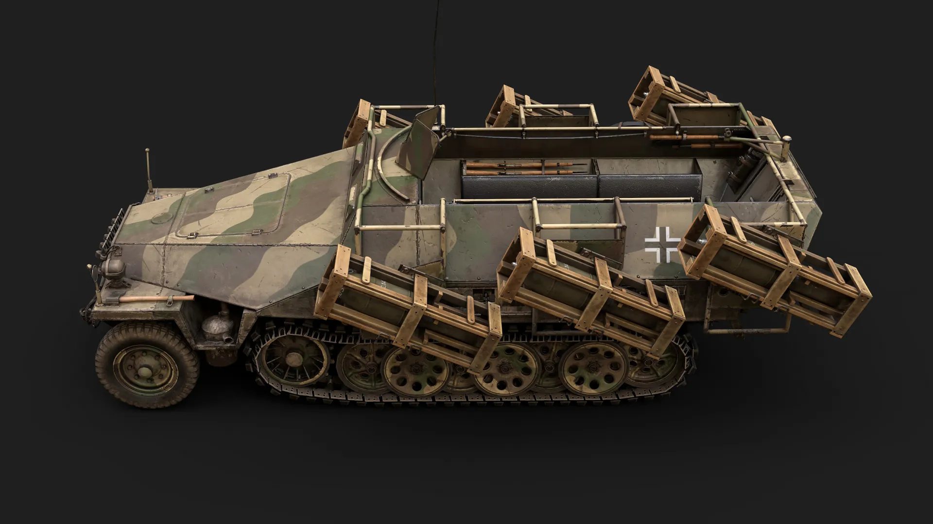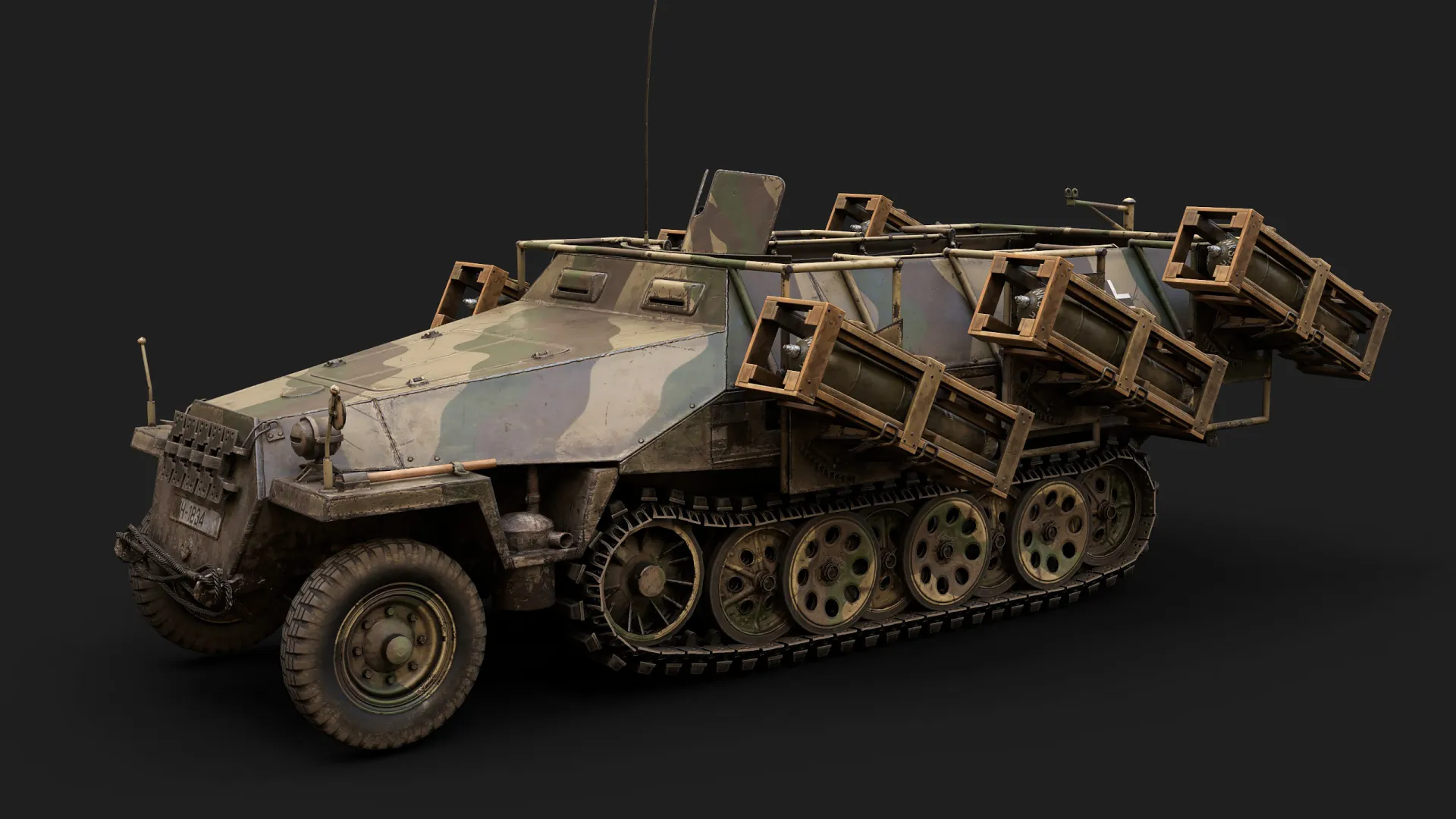 Artem Huleha modeled and asset, while Anton Huleha provided materials and lighting presets, there was also some consultation regarding texturing. This asset was created for the 'Call to arms: Gates of Hell - Ostfront' popular RTS game in realistic setting. The texture is 3072px*3072px for GEM-2 engine and 4k for renders. Tracks and wheels are baked from highpoly.