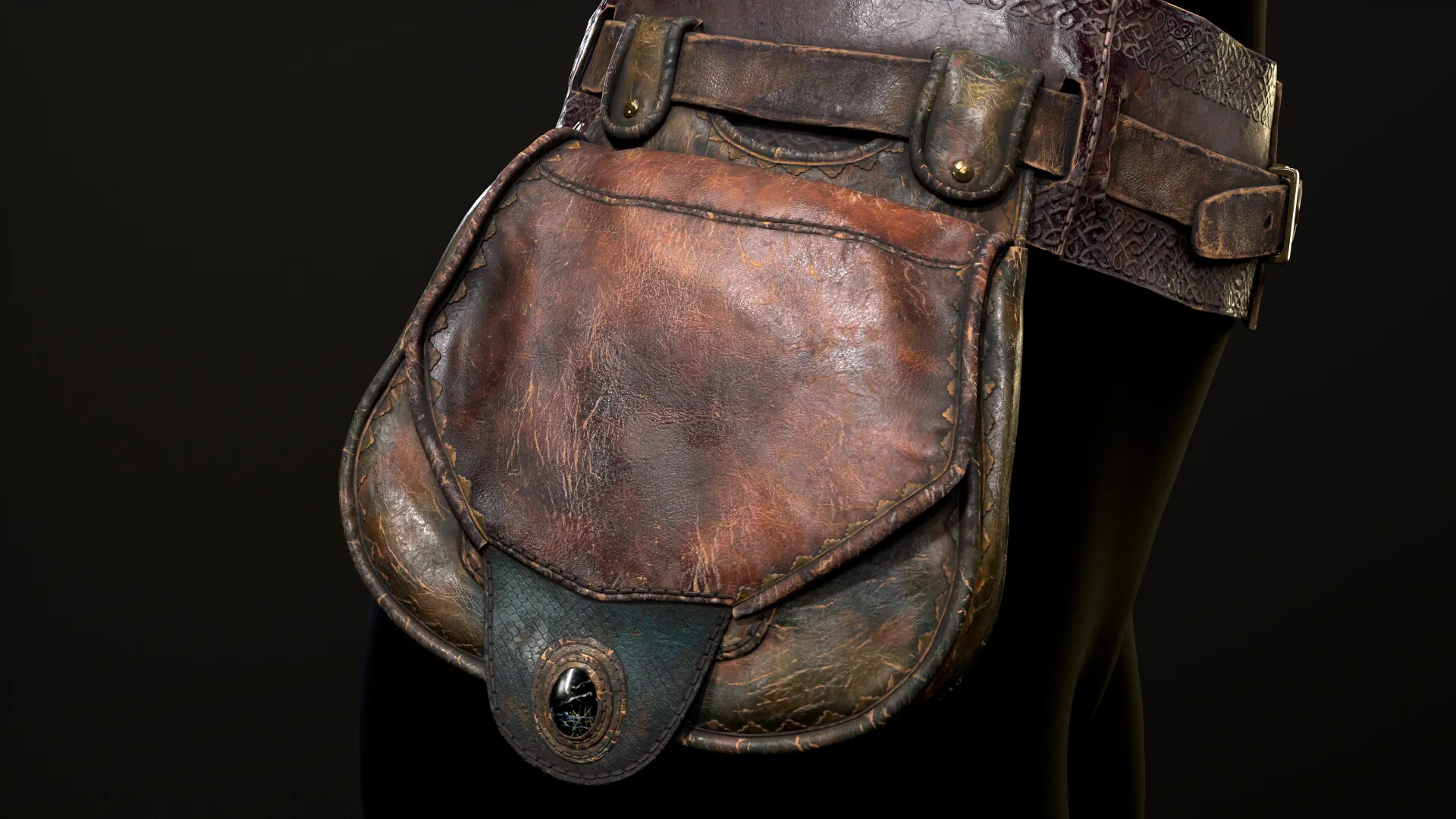 This belt-bag is made in the style of semi-realistic. I practiced creating a variety of leather. The main difficulty was to combine several references, age them and create what you like best)