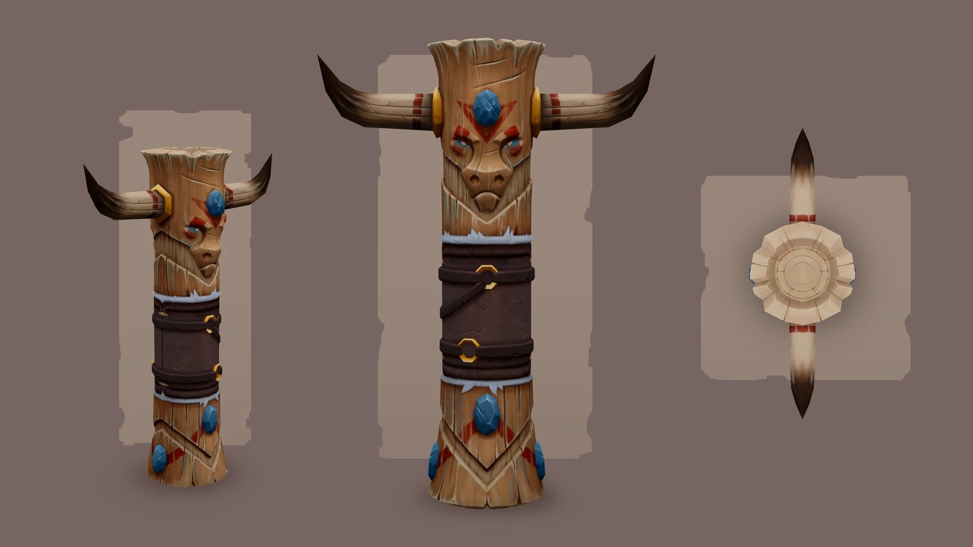 The totem was sculpted and modeled in Blender. The textures were painted by hand in Substance Painter.